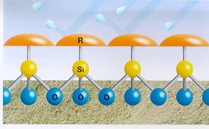 Chemical bonding of Silane Group with the construction surface Reinforcement of water repellency by the Alkyl Group facing the outside
