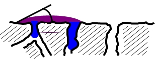 Not filled in or coated on voids